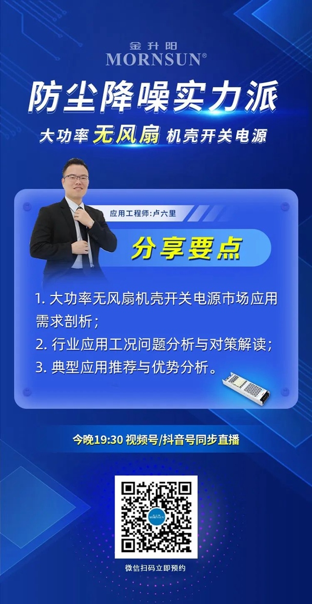 大功率無(wú)風(fēng)扇機(jī)殼開(kāi)關(guān)電源——工業(yè)制造不同場(chǎng)景如何選取合適的開(kāi)關(guān)電源?市場(chǎng)應(yīng)用中關(guān)于防塵降噪會(huì)遇到哪些問(wèn)題?如何設(shè)計(jì)滿足防塵降噪需求? 視頻號(hào)/抖音號(hào)/捷客三大平臺(tái)同步放送!今晚七點(diǎn)半,金升陽(yáng)直播間等你來(lái)品! 快快掃碼預(yù)約吧~直播活動(dòng)預(yù)告福利1——邀約有...