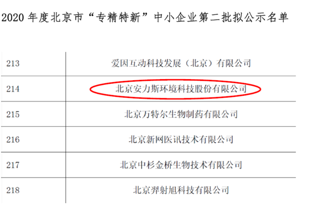 2020年7月,北京市經(jīng)濟(jì)和信息化委員會(huì)公示《2020年度北京市“專精特新”中小企業(yè)》第二批名單,北京安力斯環(huán)境科技股份有限公司(以下簡稱“安力斯環(huán)境”)成功入選,被授予2020年度北京市“專精特新”中小企業(yè)稱號(hào)。 近日,安力斯...