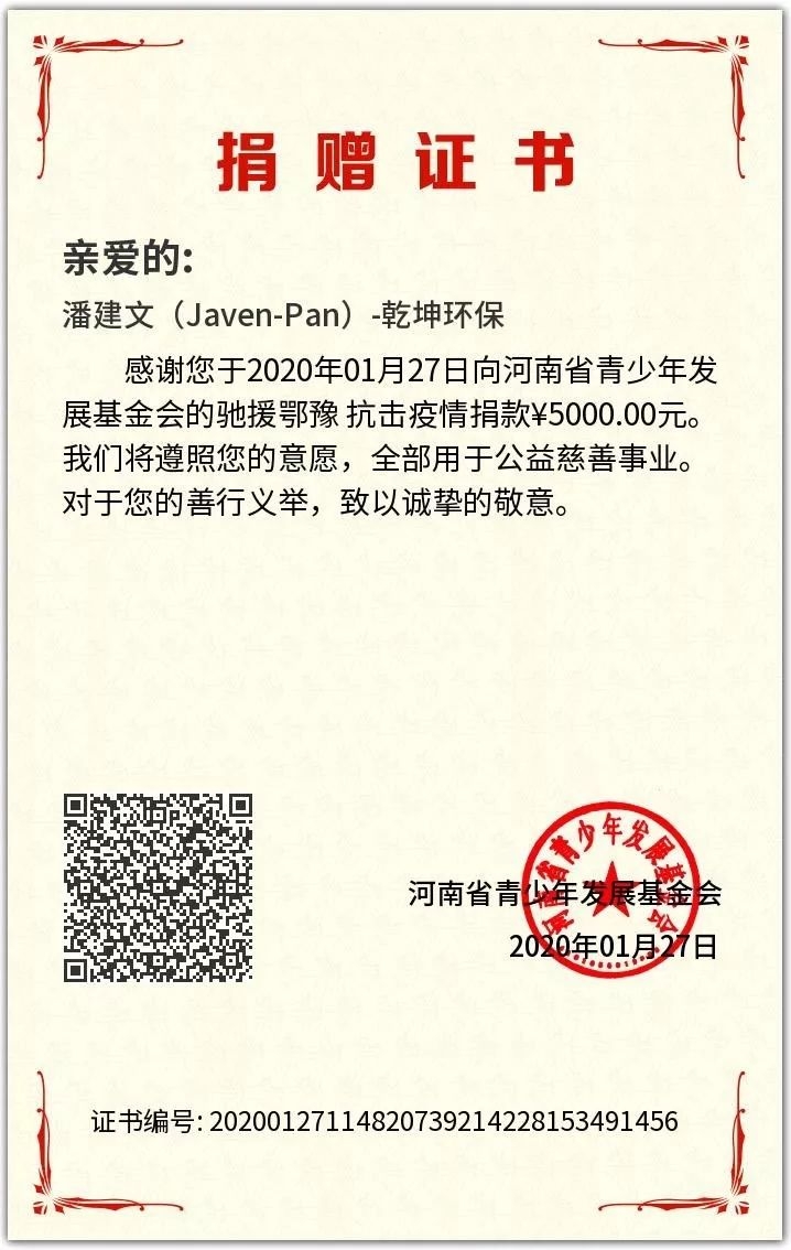全國人民在黨中央的堅強領(lǐng)導下打響了新冠肺炎疫情阻擊戰(zhàn),發(fā)生了許多可歌可泣的感人事跡。無數(shù)企業(yè)捐錢捐物,有錢出錢無錢出力眾志成城,共克時艱。 作為一家擁有高度社會責任感的環(huán)保企業(yè),乾坤環(huán)保股份有限公司(下文簡稱“乾坤環(huán)保”)連續(xù)多次捐贈防疫物資,履行社會責任,為打贏這場沒有硝煙...