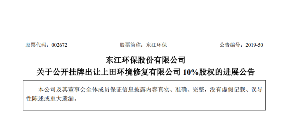 今日,中國(guó)環(huán)聯(lián)網(wǎng)獲悉,東江環(huán)保(00895)發(fā)布公告,2018年12月24日,公司第六屆董事會(huì)第二十六次會(huì)議審議通過(guò)了《關(guān)于擬公開掛牌出讓上田環(huán)境修復(fù)有限公司10%股權(quán)的議案》,公司董事會(huì)同意通過(guò)公開掛牌方式出讓公司持有的上田環(huán)境修復(fù)有限公司10%股權(quán),掛牌底價(jià)為人民幣2500萬(wàn)元。根據(jù)進(jìn)展,光大環(huán)...