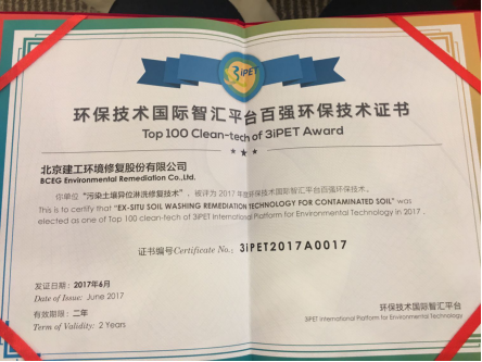 近日,2017國際清潔技術(shù)峰會(huì)暨國際智匯平臺(tái)第二屆年會(huì)在北京國際會(huì)議中心舉行,環(huán)境保護(hù)部副部長黃潤秋出席會(huì)議并講話。土壤(含固廢)污染防治類別13項(xiàng)技術(shù)獲評(píng)第二屆“環(huán)保技術(shù)國際智匯平臺(tái)百強(qiáng)技術(shù)”,公司旗下共有7項(xiàng)技術(shù)成功入選。其中,北京建工修復(fù)3項(xiàng)技術(shù)成功入選,控股子公司北京宜為凱姆公司4項(xiàng)技術(shù)成功...